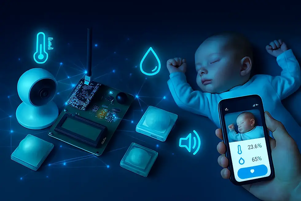 An IoT-based baby monitoring system is a smart device that uses sensors, microcontrollers, and wireless connectivity to monitor the well-being of infants. This system is designed to track and analyze various data points, such as temperature, humidity, and sound, to ensure the safety and comfort of infants. The system is built upon the Internet of Things (IoT) technology, which involves connecting devices, sensors, and machines to the internet to collect and analyze data.